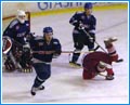 Однако гости вскоре сравняли счет (на 13 и 16 минутах шайбы забросили Галкин и Блохин), второй период завершился с результатом 2:2, в третьем закипела нешуточная борьба. На второй минуте гол воскресенцам с передачи Полякова забивает Колбин, на 8-ой — Федоров.